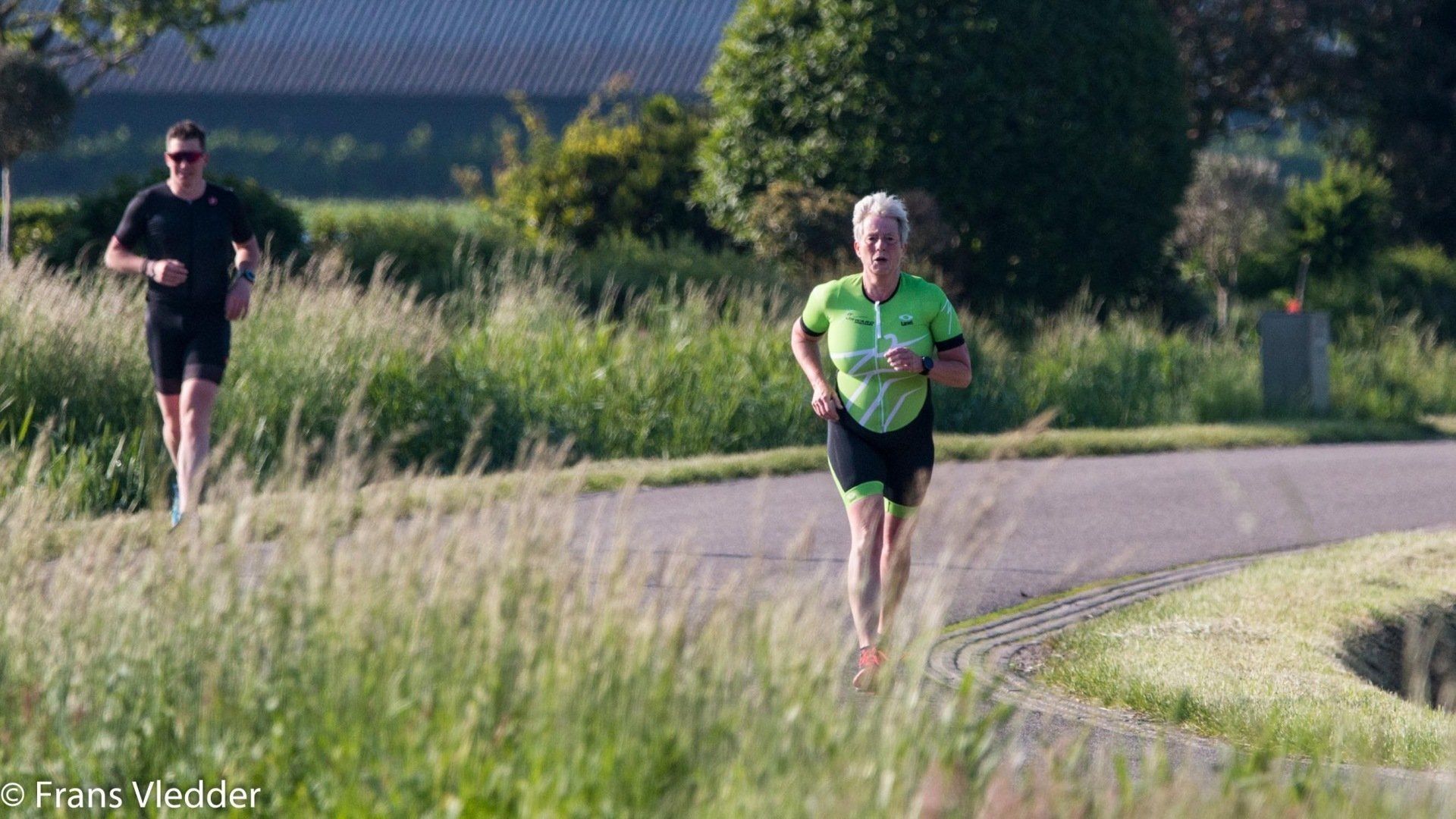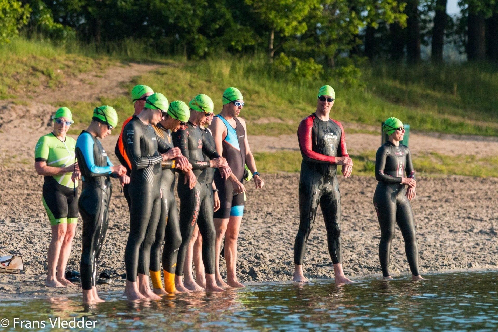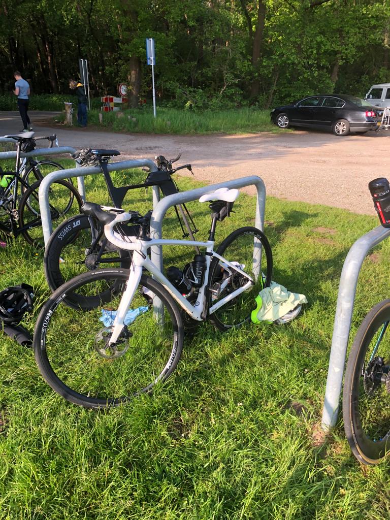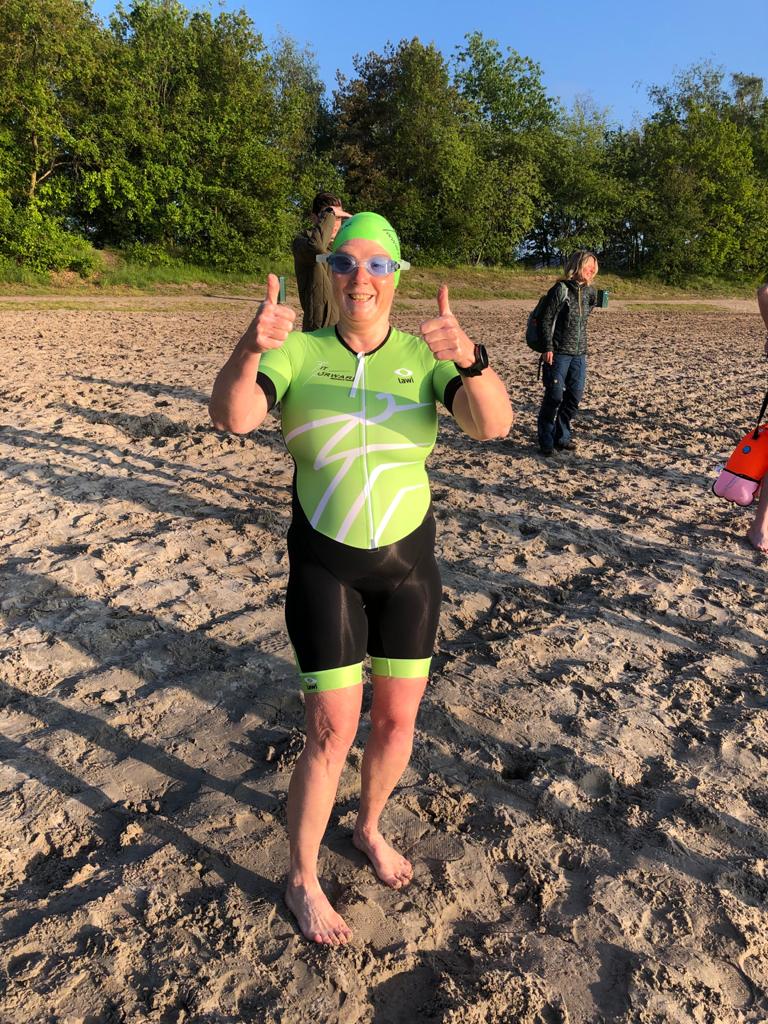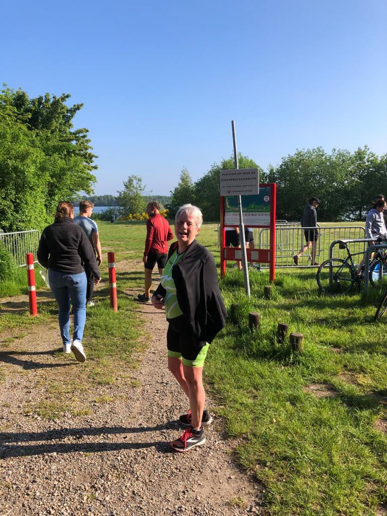 Racefietsen doen Peter en ik al sinds ik Peter heb leren kennen in 2014. In coronatijd heb ik naast het wandelen ook het hardlopen weer opgepakt om lekker in beweging te kunnen blijven. Een vriendin vraagt of ik het leuk vind om mee te gaan naar een zwemclinic omdat zij nogmaals een 1/8ste triathlon wil gaan doen en haar borstcrawl wel wat verbetering kan gebruiken. Ach waarom niet, het is wederom bewegen en het kan vast niet slecht voor je zijn. Begin maart begint de clinic, 's morgens om 7 uur in een buitenbad. Het vriest nog maar wat vind ik dit lekker en leuk. Een technisch goede borstcrawl zwemmen is nog best wel moeilijk, maar ik geef niet op. Eigenlijk eerder dan ik er klaar voor ben is het 30 mei en heb ik me ingeschreven voor mijn eerste 1/8ste triathlon. Starts 's morgens om 7 uur!