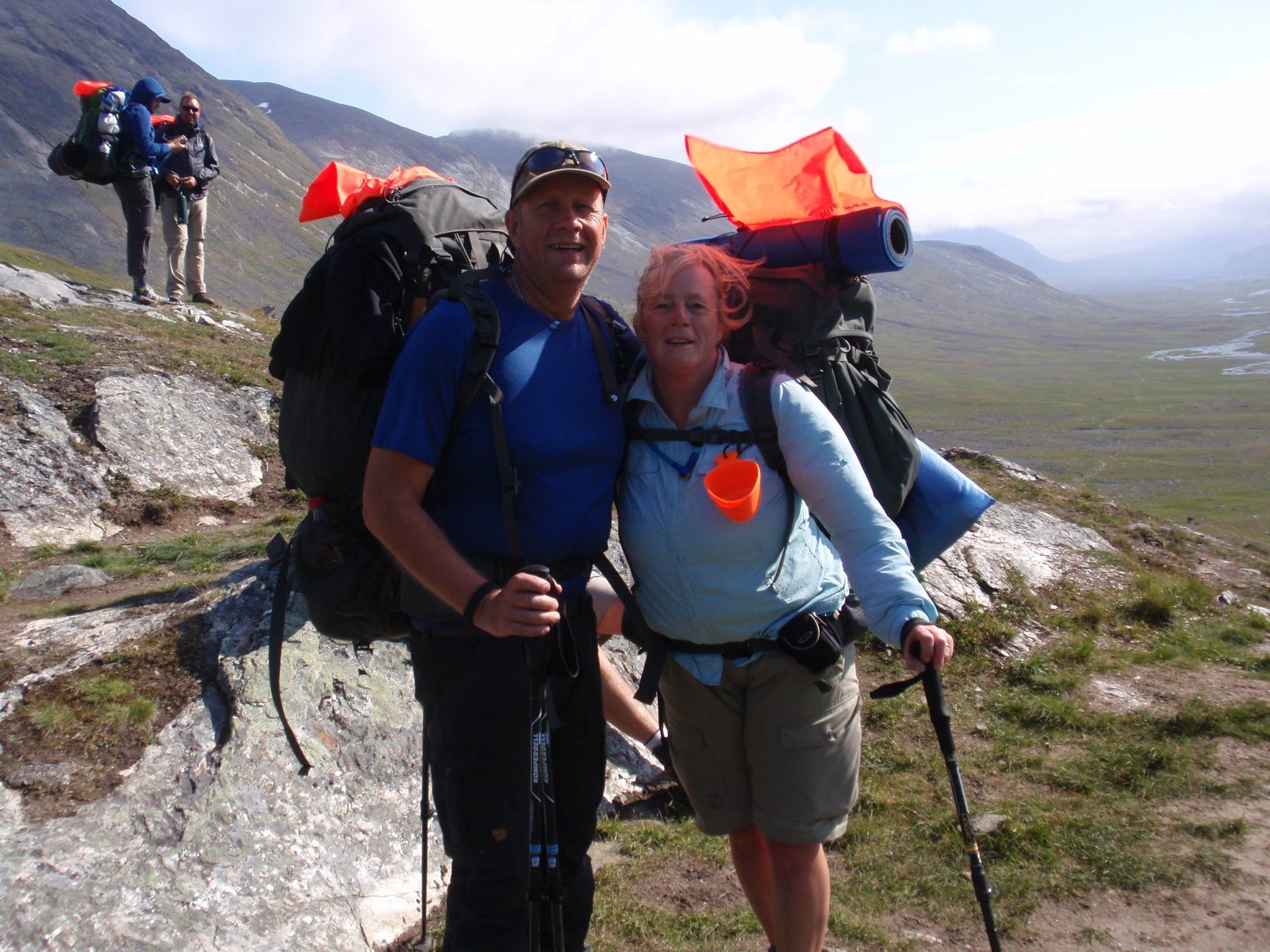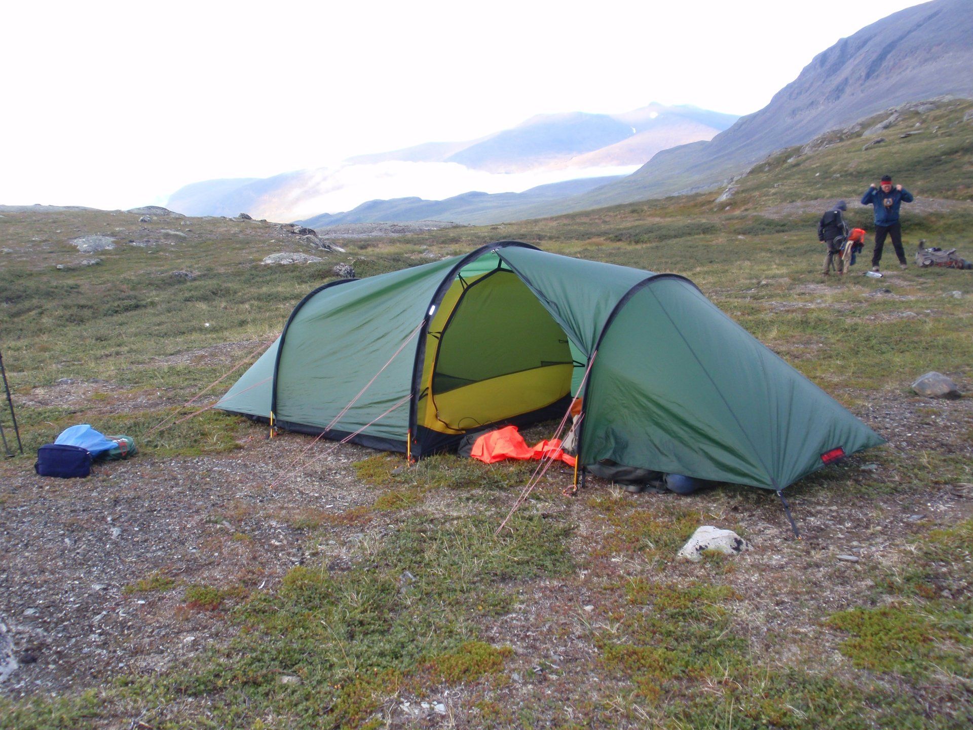 Mijn rugzak is mijn thuis voor onze de komende dagen. Voor onze Classic Denemarken hebben we een 2-persoons Hilleberg Anjan GT tent gekocht. Maar 2,2 kg huis! Samen met mijn matje, slaapzak tot min 5 graden en mijn kleding, verpakt in waterdichte zakken. Je moet er niet aan denken dat als je je tent nat moet inpakken en dat alles in je rugzak ook nat wordt. Want geloof me, slapen in een natte slaapzak is geen pretje. Daarnaast nog voor 3 dagen expeditie voeding, repen en zakken met noten, vormen de basis van onze maaltijden de komende dagen. Er zullen maar een paar hutten zijn waar we eten bij kunnen kopen en Peter heeft me geleerd dat je altijd moet zorgen dat je een dag extra eten bij je hebt. We hebben één geluk. Op deze tocht kun je gewoon uit de stromende beken drinken, waardoor je niet constant moet zorgen dat je minimaal 3 liter water bij je hebt. Dit scheelt toch weer wat kilo's in je rugzak. Eindelijk op pad!